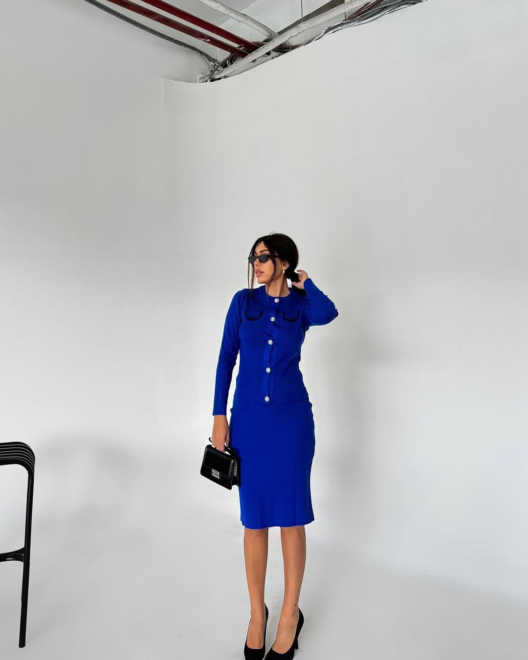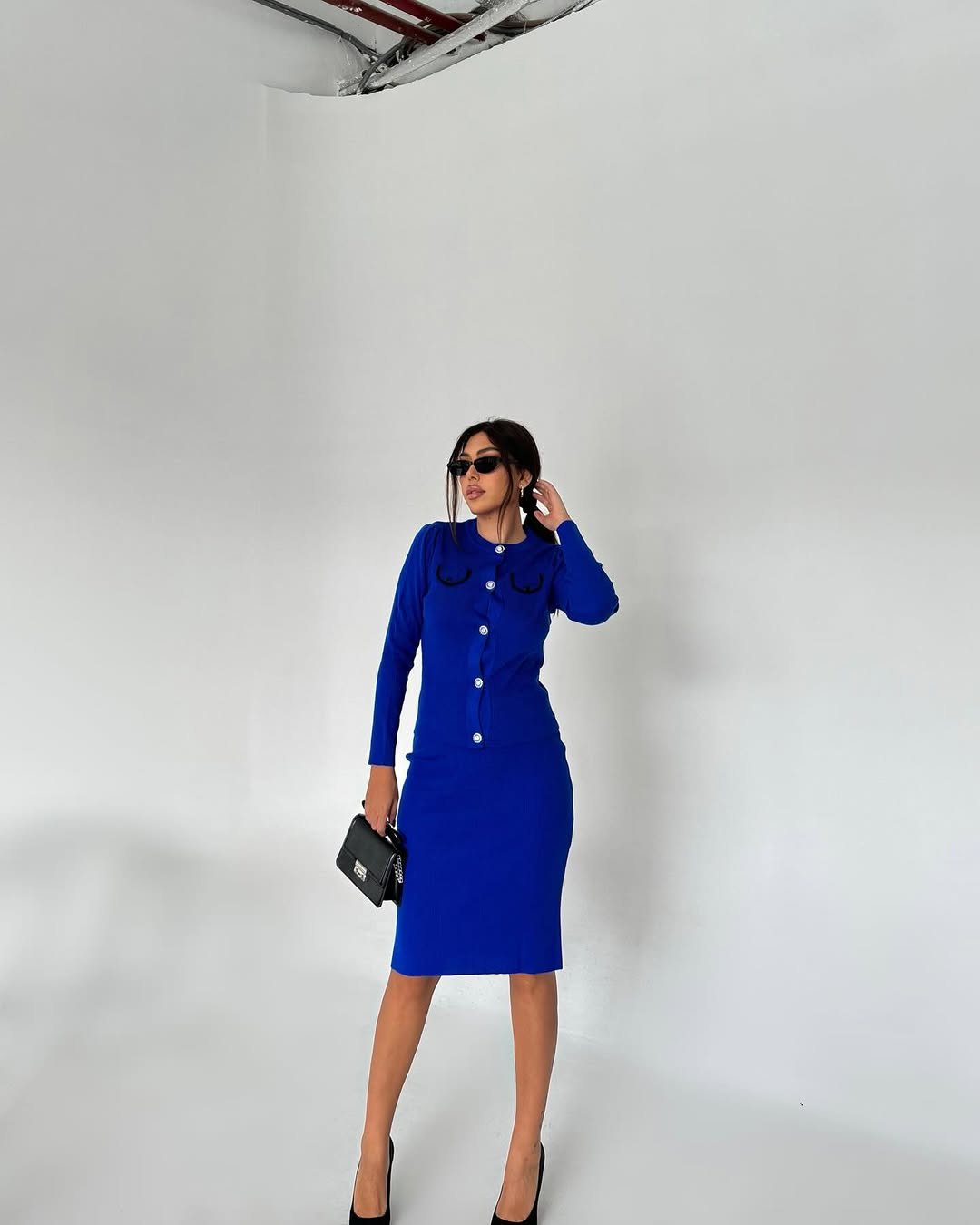 Women Single Breasted Sweater and Elastic Waist Midi Skirt Korean Elegant Sets Ladies Knit Outfits